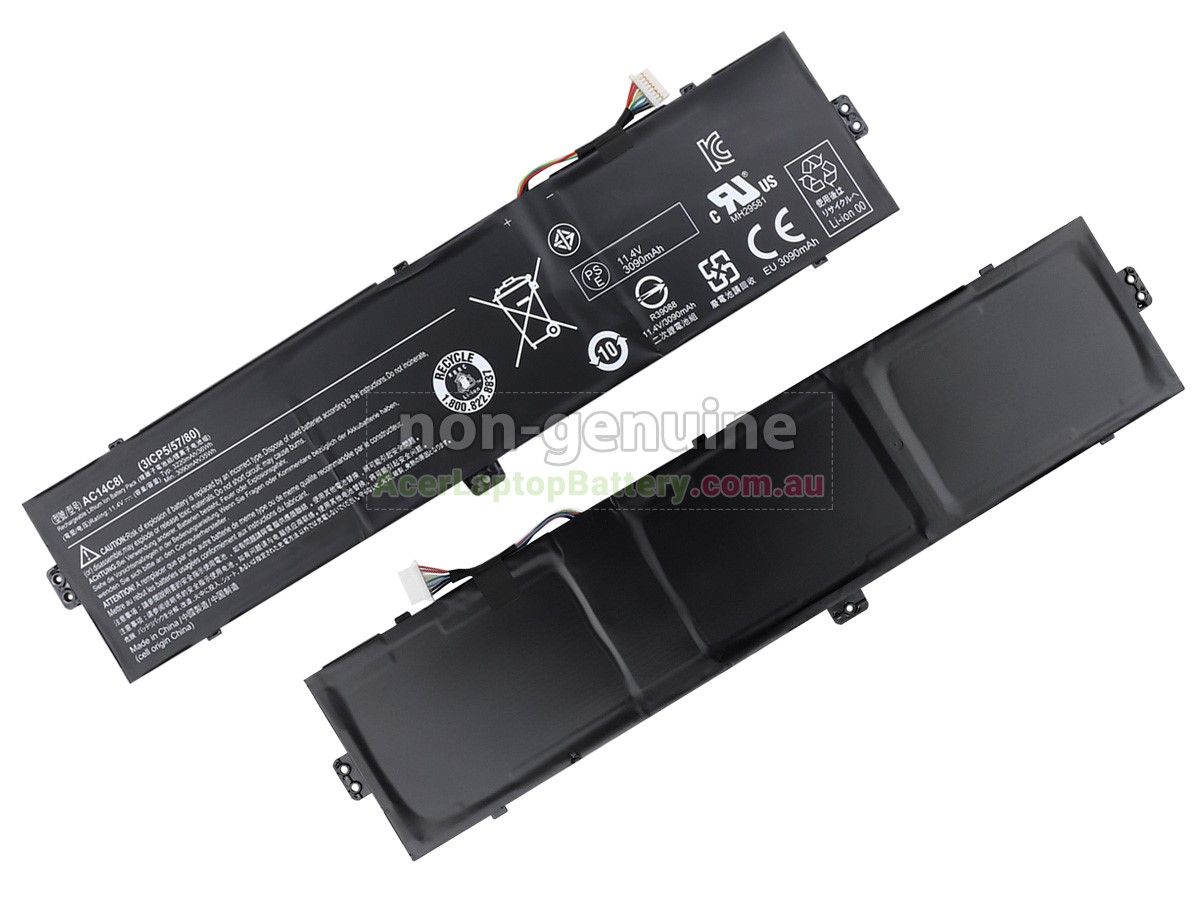 Thank you for purchasing this high-quality replacement Acer AC14C8I(3ICP5/57/80) notebook battery at AcerLaptopBattery.com.au. We have a strict testing process to ensure that your ordered products (like this battery for the Acer AC14C8I(3ICP5/57/80) laptop) are functional normality before they are packed and sent to you. Before placing an order please make sure that your old original Acer AC14C8I(3ICP5/57/80) battery's part number is listed below and the shape is the same as our batteries' images (please view the larger images for details).