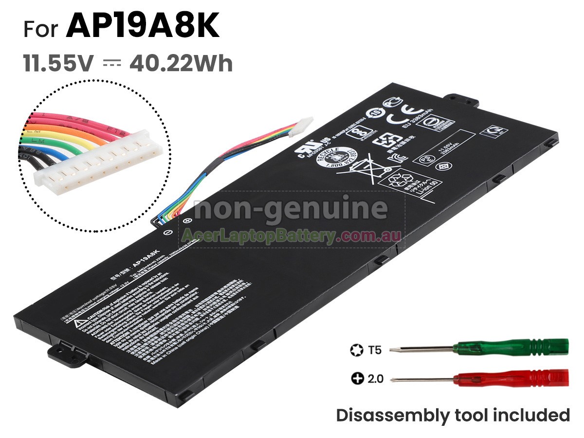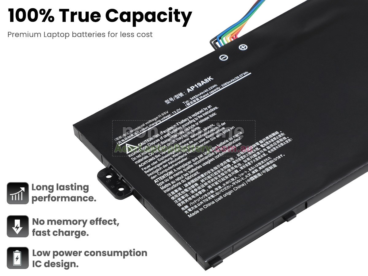 Thank you for purchasing this high-quality replacement Acer AP19A8K notebook battery at AcerLaptopBattery.com.au. We have a strict testing process to ensure that your ordered products (like this battery for the Acer AP19A8K laptop) are functional normality before they are packed and sent to you. Before placing an order please make sure that your old original Acer AP19A8K battery's part number is listed below and the shape is the same as our batteries' images (please view the larger images for details).
