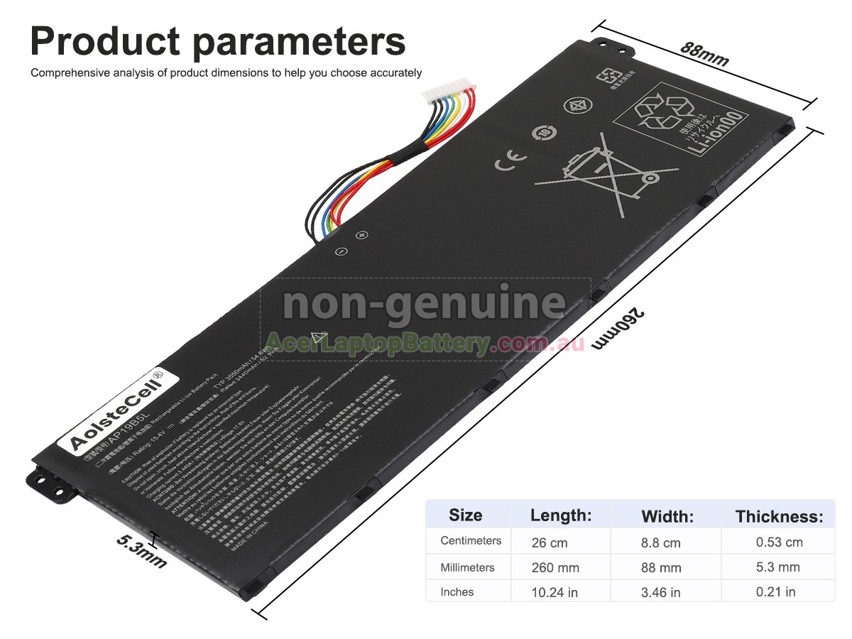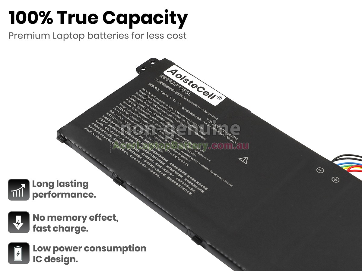 Thank you for purchasing this high-quality replacement Acer AP19B5L notebook battery at AcerLaptopBattery.com.au. We have a strict testing process to ensure that your ordered products (like this battery for the Acer AP19B5L laptop) are functional normality before they are packed and sent to you. Before placing an order please make sure that your old original Acer AP19B5L battery's part number is listed below and the shape is the same as our batteries' images (please view the larger images for details).