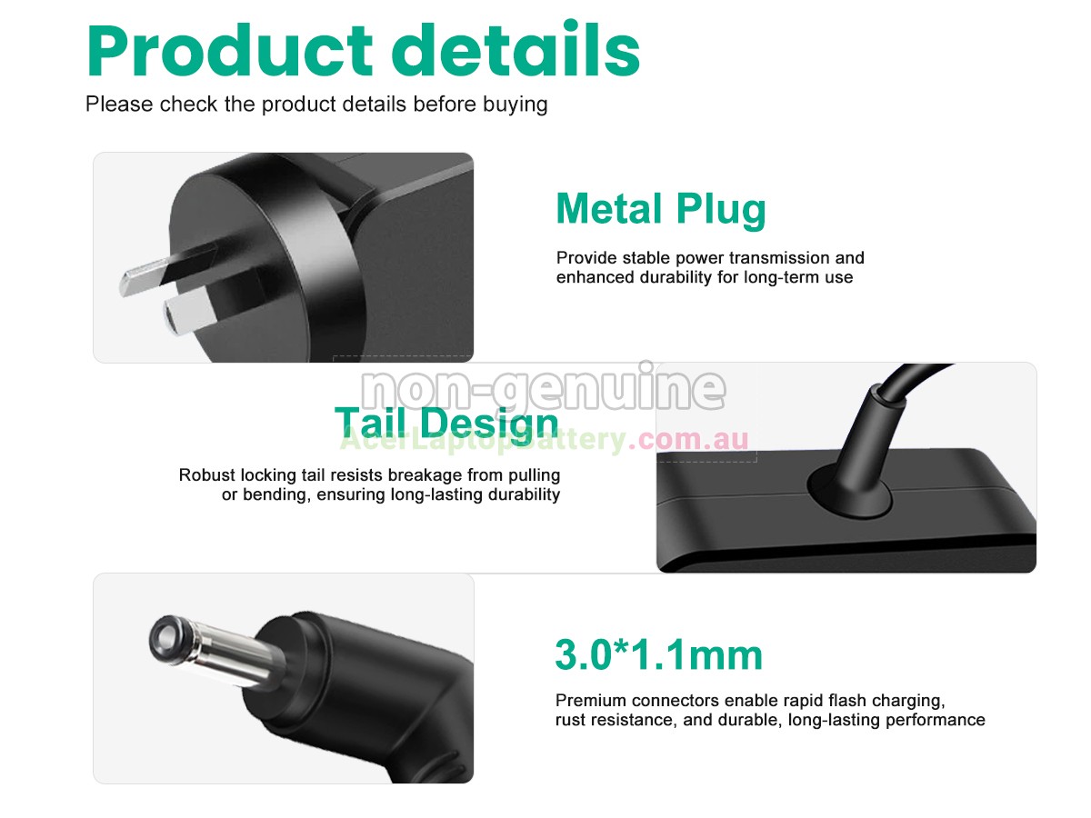 All adapters sold on AcerLaptopBattery.com.au are replacement parts. AcerLaptopBattery.com.au doesn't affiliate with any of the original manufacturers. Any registered trademarks or model names listed above are identified as purposes of showing compatibility only.
