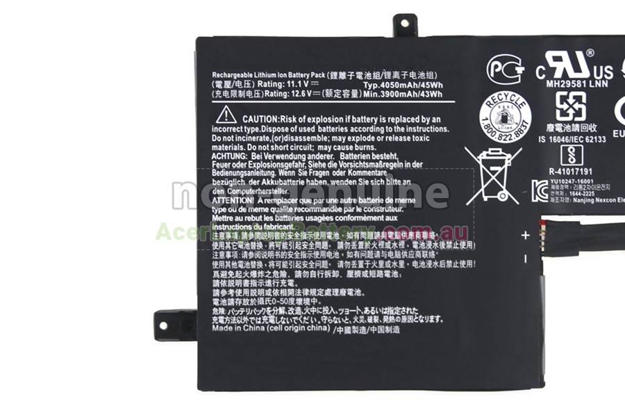 Thank you for purchasing this high-quality replacement Acer Chromebook 11 N7 C731-C8S4 notebook battery at AcerLaptopBattery.com.au. We have a strict testing process to ensure that your ordered products (like this battery for the Acer Chromebook 11 N7 C731-C8S4 laptop) are functional normality before they are packed and sent to you. Before placing an order please make sure that your old original Acer Chromebook 11 N7 C731-C8S4 battery's part number is listed below and the shape is the same as our batteries' images (please view the larger images for details).