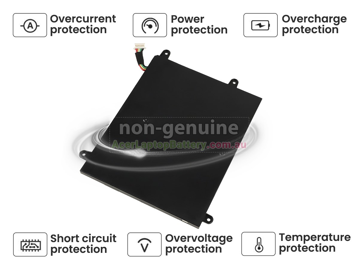 Our brand new replacement battery for the Acer Iconia Tab A501-10S16U notebook is made with high-grade cells from Samsung, LG, and Panasonic for maximum performance. This replacement Acer Iconia Tab A501-10S16U battery pack is specially designed with multiple-protection circuits for maximum safety. The housing(case) of the Acer Iconia Tab A501-10S16U battery pack is made of non-flammable and very durable plastic, which is fire retarded and avoids damage when dropped from low heights