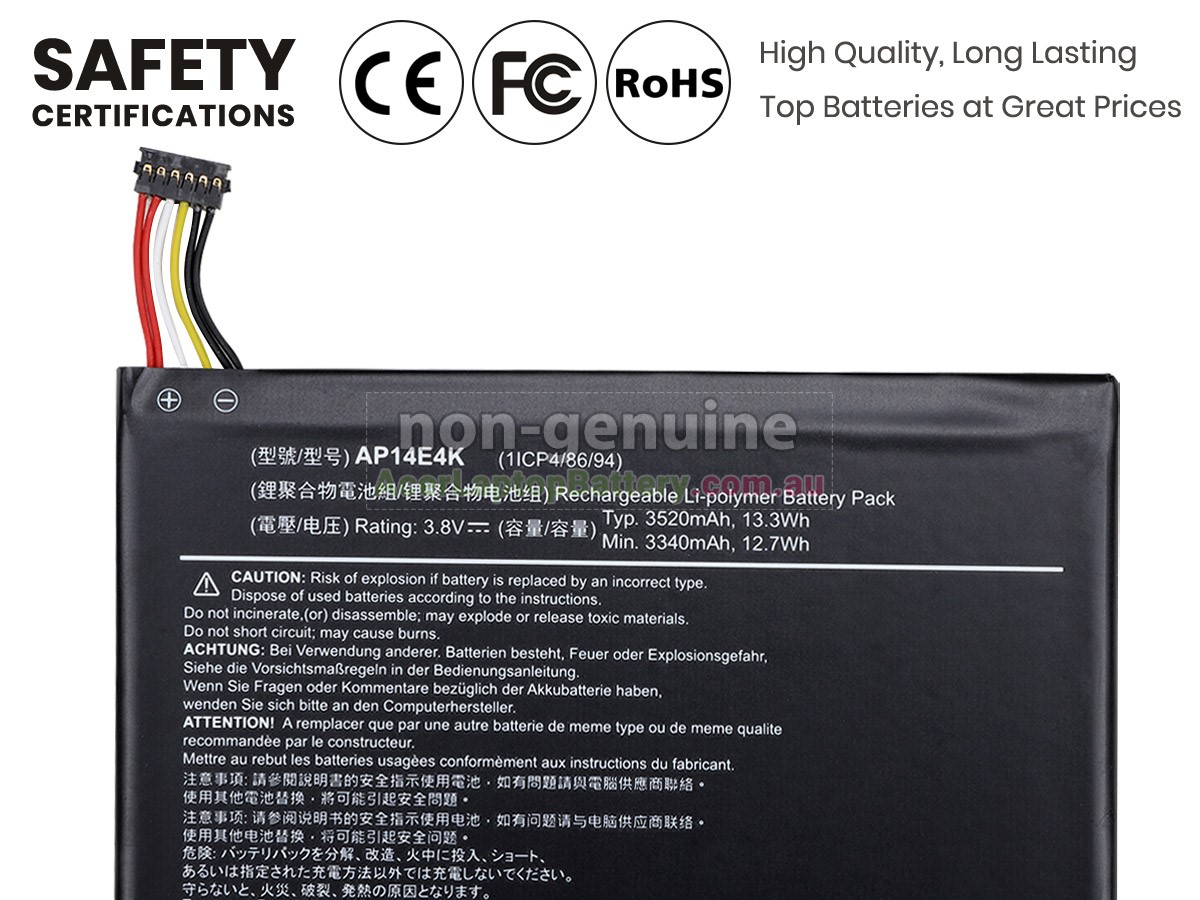 All batteries sold on AcerLaptopBattery.com.au are replacement parts. acerlaptopbattery.com.au doesn't affiliate with any of the original manufacturers. Any registered trademarks or model names listed above are identified as purposes of showing compatibility only.