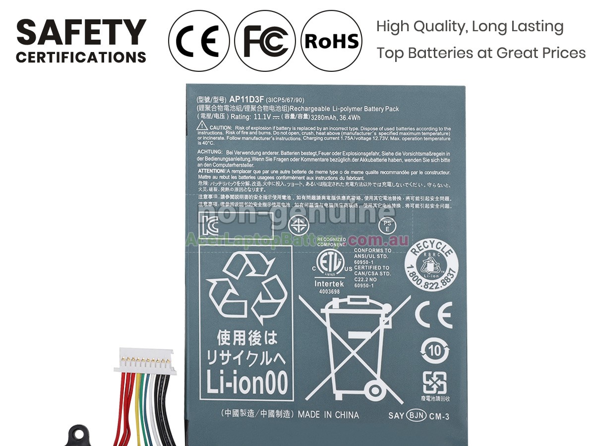 All batteries sold on AcerLaptopBattery.com.au are replacement parts. acerlaptopbattery.com.au doesn't affiliate with any of the original manufacturers. Any registered trademarks or model names listed above are identified as purposes of showing compatibility only.
