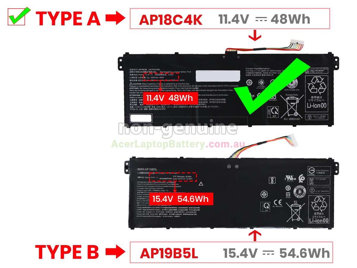 Thank you for purchasing this high-quality replacement Acer SWIFT 3 SF314-42-R2QZ notebook battery at AcerLaptopBattery.com.au. We have a strict testing process to ensure that your ordered products (like this battery for the Acer SWIFT 3 SF314-42-R2QZ laptop) are functional normality before they are packed and sent to you. Before placing an order please make sure that your old original Acer SWIFT 3 SF314-42-R2QZ battery's part number is listed below and the shape is the same as our batteries' images (please view the larger images for details).