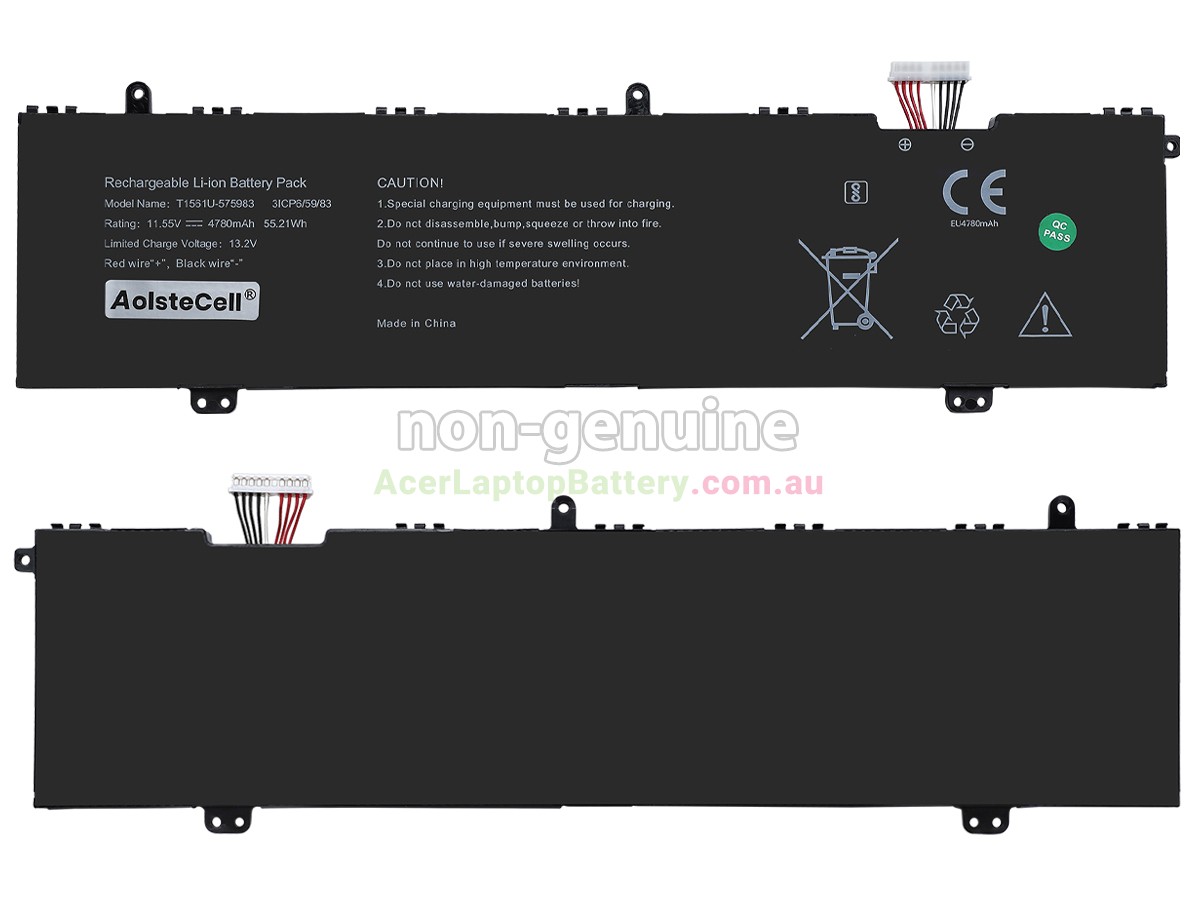 Thank you for purchasing this high-quality replacement Acer T1561U-575983 notebook battery at AcerLaptopBattery.com.au. We have a strict testing process to ensure that your ordered products (like this battery for the Acer T1561U-575983 laptop) are functional normality before they are packed and sent to you. Before placing an order please make sure that your old original Acer T1561U-575983 battery's part number is listed below and the shape is the same as our batteries' images (please view the larger images for details).